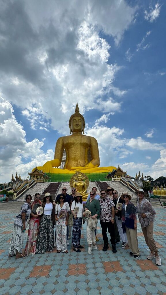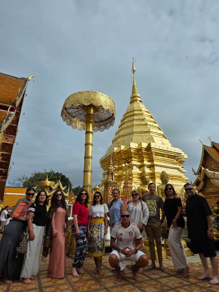 El recorrido comenzó en Bangkok, capital de Tailandia, una ciudad vibrante donde lo ancestral convive con lo moderno. En los primeros días se incluyó un recorrido por la parte antigua de la ciudad, visitando templos emblemáticos como el Wat Traimit, hogar de una majestuosa figura de Buda de 5.5 toneladas de oro, y el Wat Po, que alberga al Buda Reclinado más grande del país. El día cerró con una visita al Gran Palacio, antigua residencia real desde 1782, que también resguarda el venerado templo del Buda de Esmeralda, conocido como Wat Phra Kaeo.