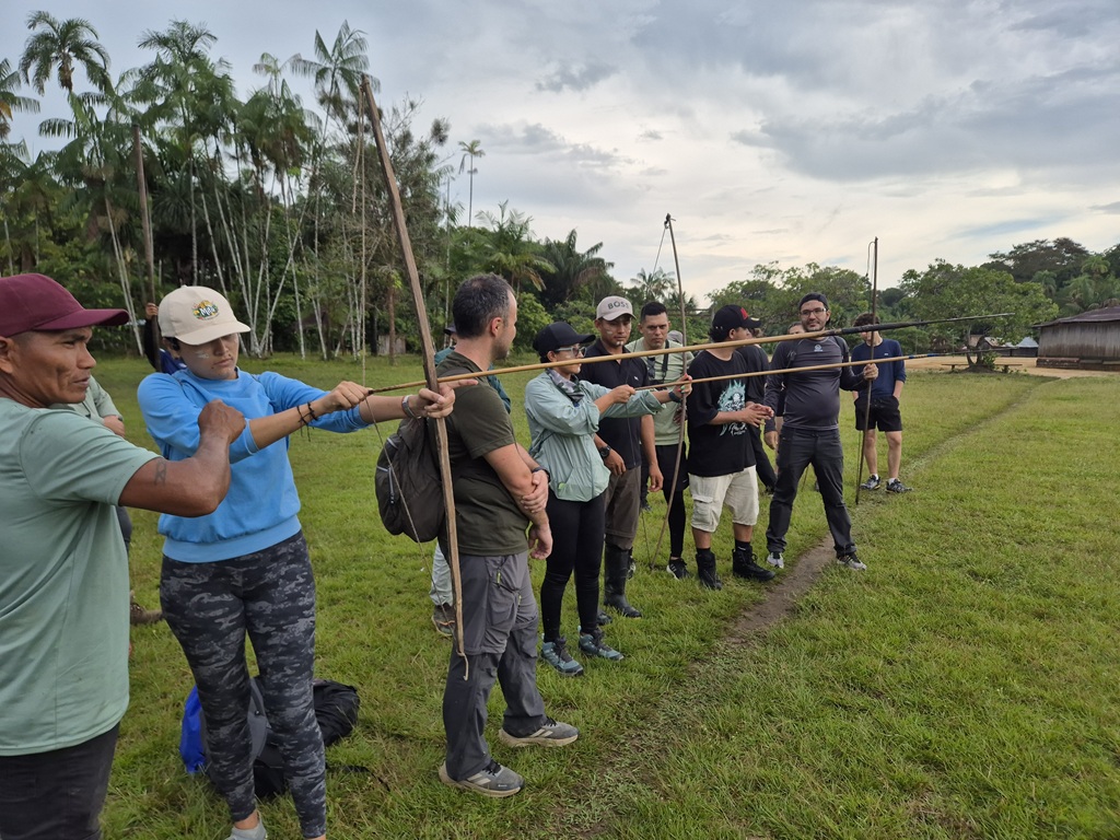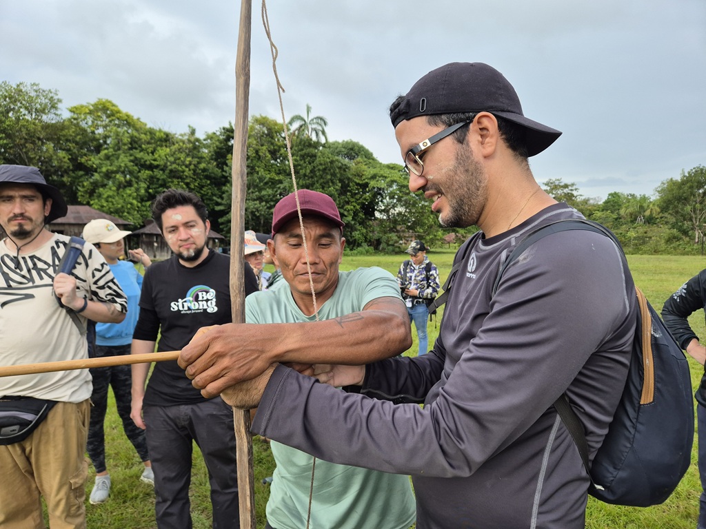 Luego de un torrencial aguacero, como acostumbra a ocurrir en la selva, el grupo puede disfrutar de otra de las actividades pensadas para los visitantes en Puerto Golondrinas: aprender a usar el arco y la flecha y la cerbatana; antiguas armas de cacería de los pueblos originarios. Además, quienes deseen un poco de desconexión, pueden alojarse en una cabaña dispuesta para los turistas, que además de hamacas y camas con toldillo, cuentan con servicio de internet satelital.