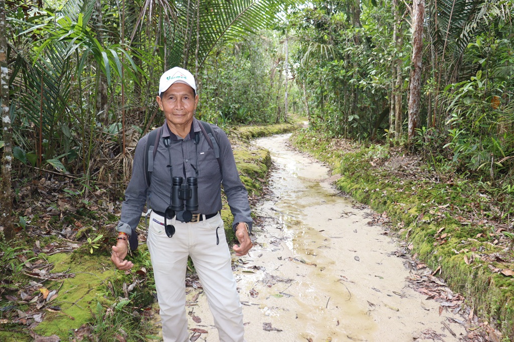 El tercer día de actividades está reservado para uno de los escenarios más particulares del municipio: los bosques de arena blanca, un paraíso de los pajareros que conduce al emblemático Cerro Guacamayas, dentro de la comunidad Mitú Cachivera. El acompañamiento no puede ser mejor: el local Miguel Portura, reconocido guía avistador de aves, quien conduce al grupo por los vericuetos del sendero, en donde reposa, galante, el gallito de roca amazónico.
