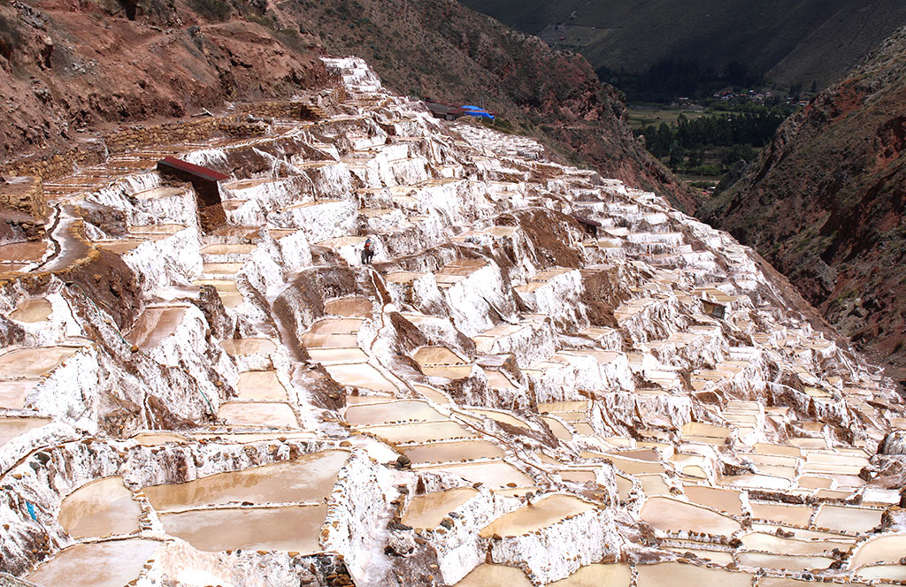 Otra parada recomendada en el Valle Sagrado son las salineras de Maras, un afloramiento natural que abastece a más de 3.000 pozas de sal explotadas por 630 familias de Maras y Pichingoto, agrupadas en la cooperativa propietaria. La visita, breve y enriquecedora, permite conocer el proceso de obtención, extracción y procesamiento de la sal rosada de Maras —en sus versiones natural, ahumada o para parrilla, entre otros—, un producto que abastece buena parte del mercado peruano y llega también a diversos países del mundo.