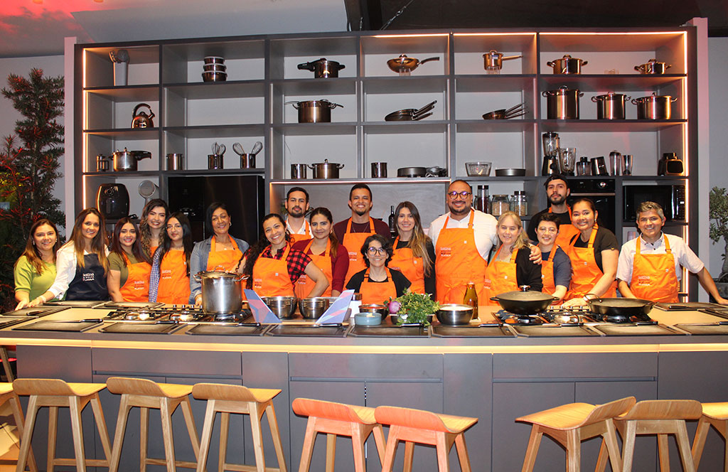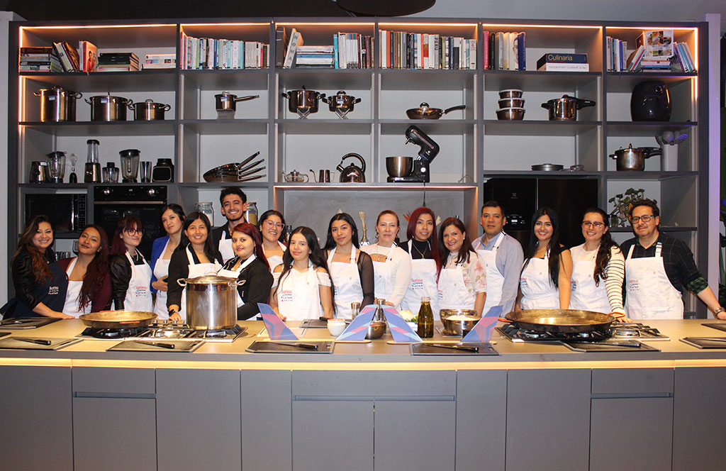 El evento “Sabores que vuelan más alto” invitó a agentes de viajes de Aviatur, BCD Travel, Expreso Viajes y Touréxito a poner a prueba sus habilidades culinarias en un reto de cocina. Cada empresa representaba un equipo y guiados por un chef experto, los invitados asumieron una única misión: preparar la mejor paella. Desde cortar los ingredientes y las proteínas hasta la cocción, cada grupo elaboró su receta desde cero, dando como resultado platos tan apetitosos como deliciosos.
