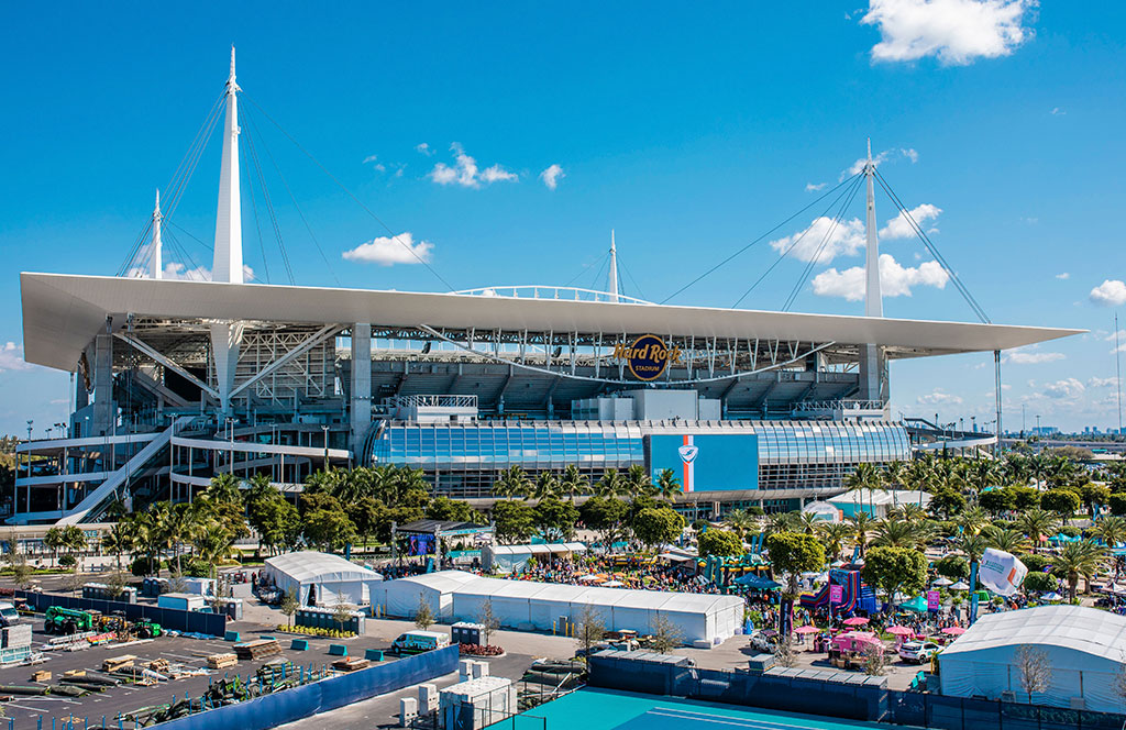 Los partidos de la Copa Mundial de Miami se llevarán a cabo en el Hard Rock Stadium, que pasará a llamarse “Miami Stadium” durante el torneo. Se ubica en Miami Gardens y tiene una capacidad para 65.000 personas, con un techo que protege la mayoría de los asientos del sol de Florida y deja el campo al aire libre. Este estadio recibirá siete partidos, incluidos cuatro partidos de la fase de grupos y tres eliminatorias decisivas: