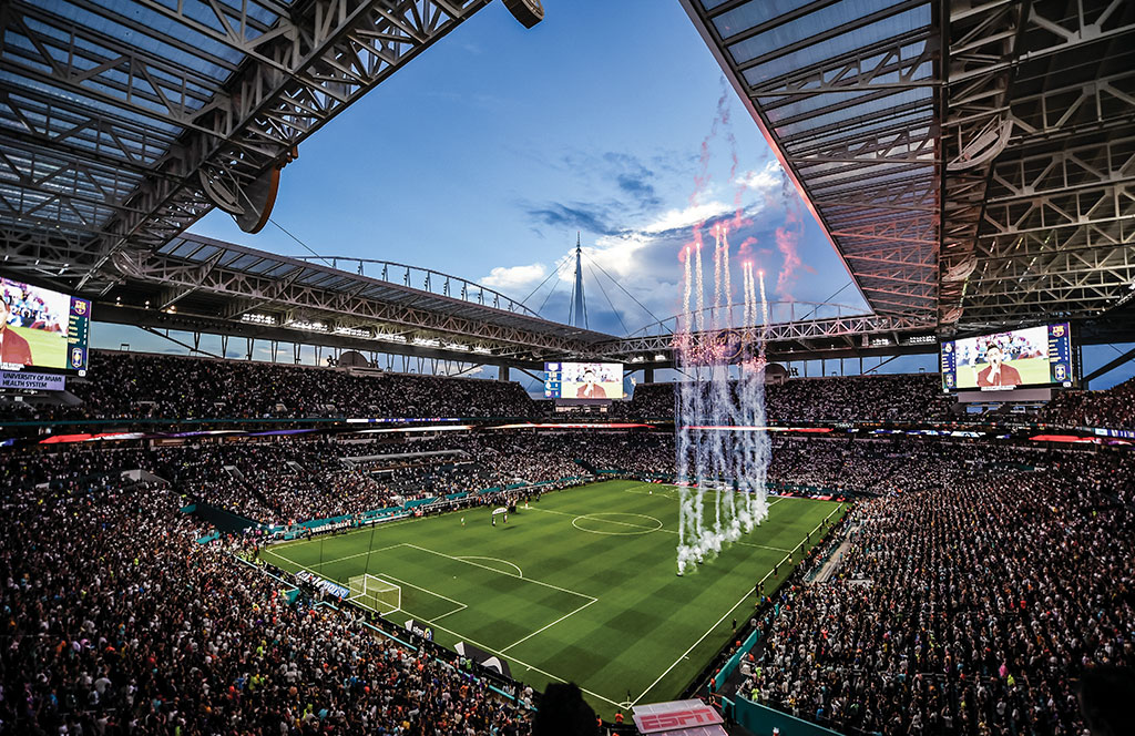Los partidos de la Copa Mundial de Miami se llevarán a cabo en el Hard Rock Stadium, que pasará a llamarse “Miami Stadium” durante el torneo. Se ubica en Miami Gardens y tiene una capacidad para 65.000 personas, con un techo que protege la mayoría de los asientos del sol de Florida y deja el campo al aire libre. Este estadio recibirá siete partidos, incluidos cuatro partidos de la fase de grupos y tres eliminatorias decisivas: