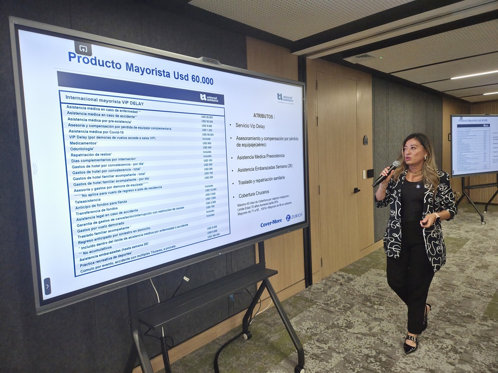 Durante su exposición, la representante de la compañía de asistencia al viajero fue enfática en destacar las ventajas de un producto como el de Universal Assistance frente a los servicios fragmentados y poco claros de las tarjetas de crédito. No hay punto de comparación. Además, los desarrollos tecnológicos de la aplicación de UA operan como el mejor aliado y compañero de viaje del pasajero.