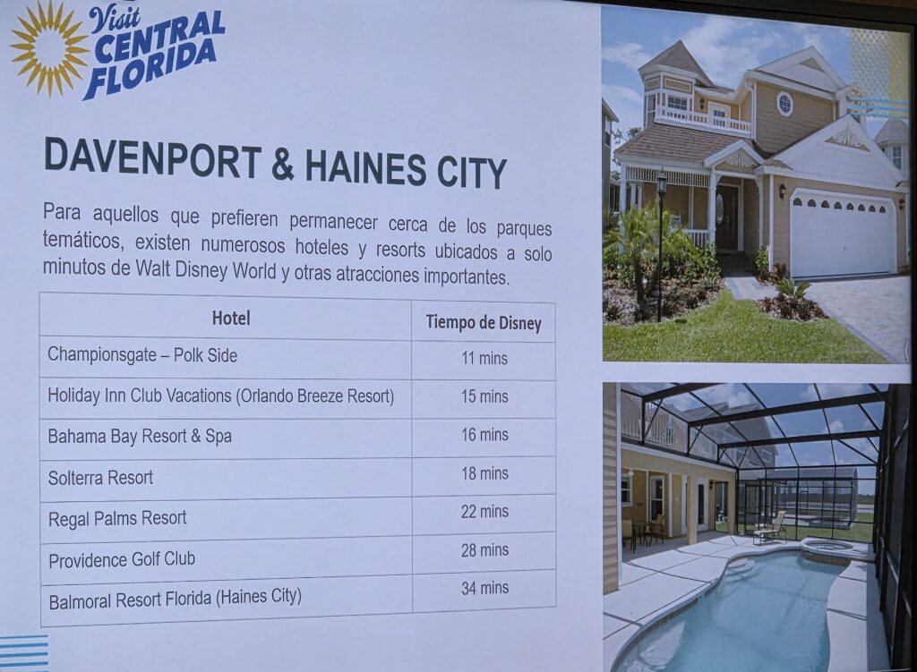 Las opciones de alojamiento no son pocas, desde hoteles temáticos y alojamientos no convencionales, hasta las casas vacacionales de Davenport. Las opciones están sobre la mesa: si una familia toma sus vacaciones en Florida y contempla rentar un auto, recomendar este condado puede ser una manera de sorprender y superar sus expectativas.